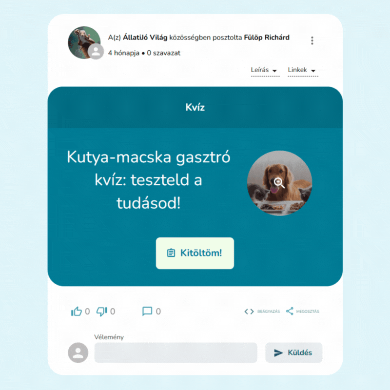 A szavazások, felmérések, kvízek kitöltése során természetesen illeszkednek a kitöltési folyamatba, biztosítva a folyamatos figyelmet: